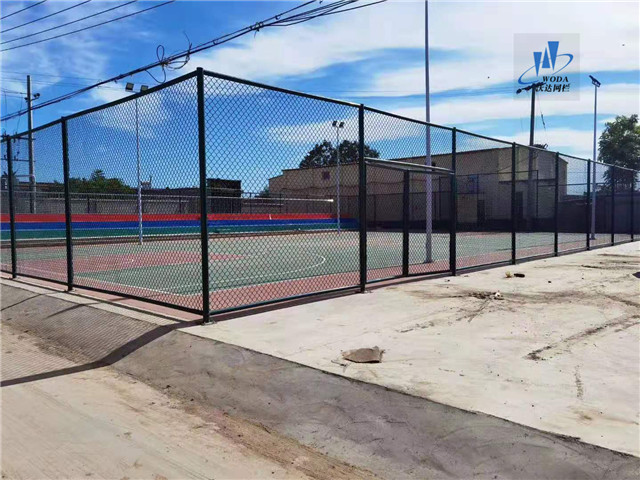 (2)底盤:要求地面硬化,在地面上打上膨脹螺栓將立柱予以固定。網(wǎng)球場圍網(wǎng)的安裝有組合式的和現(xiàn)場焊接兩種圍網(wǎng)。網(wǎng)球場護(hù)欄現(xiàn)場焊接的要麻煩的多,一般推薦客戶選用可以組裝的。